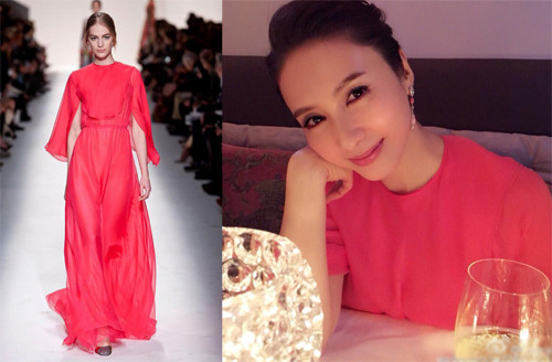 Ngoài túi xa xỉ, Lê Tư thường sắm váy áo của các thương hiệu hàng đầu thế giới. Trong ảnh, bà mẹ ba con khoe sắc với đầm tươi mới của Valentino.