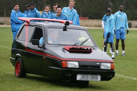 Độc đáo nhất phải kể tới chiếc xế hộp 3 bánh của tập thể cầu thủ CLB Portsmouth. Đây là chiếc Reliant Robin tí hon mà các cầu thủ phải góp tiền mua. Lái chiếc xe 3 bánh cũ kỹ quanh sân về nhà là hình phạt mà đội bóng áp dụng cho cầu thủ tập kém nhất trong ngày.