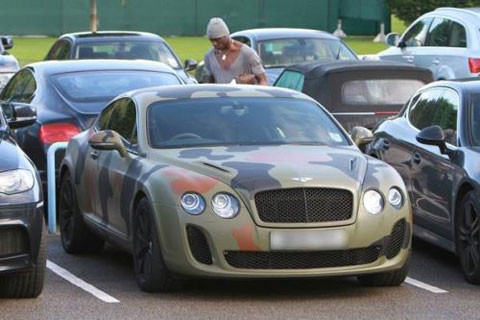 Chiếc Bentley Continental GT của Balotelli được độ bằng cách sơn màu rằn ri theo phong cách quân đội độc đáo và cá tính như chính cầu thủ này.