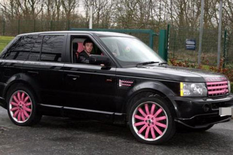 Cựu tiền vệ Man City, Stephen Ireland còn khiến NHM thích thú khi độ chiếc Range Rover của mình với điểm nhấn màu hồng rất... nữ tính.