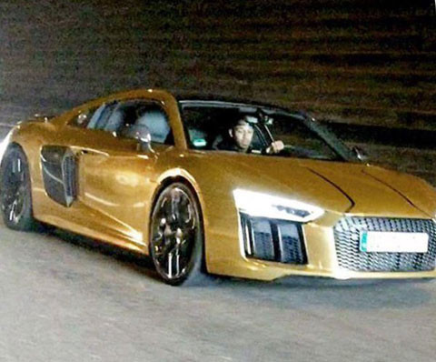 Tiền đạo của Dortmund - Aubameyang khiến đồng đội lác mắt với chiếc xe GOLD-FOILED Audi R8 độ màu vàng chóe của mình.
