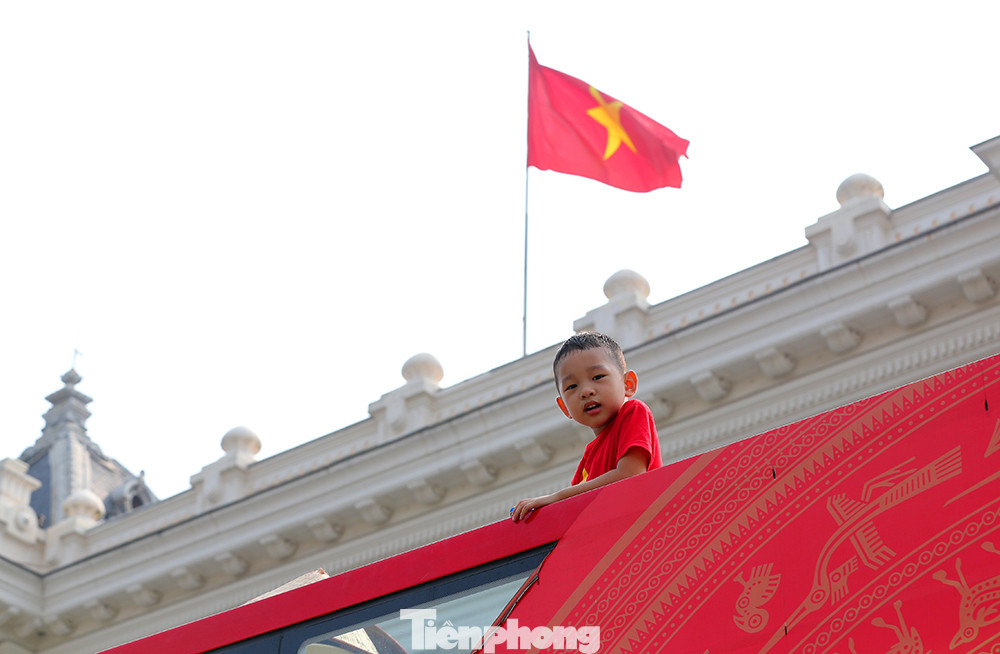 Tham quan phố phường Hà Nội ngày Quốc khánh 2/9 bằng xe buýt được nhiều người dân Thủ đô Hà Nội lựa chọn.