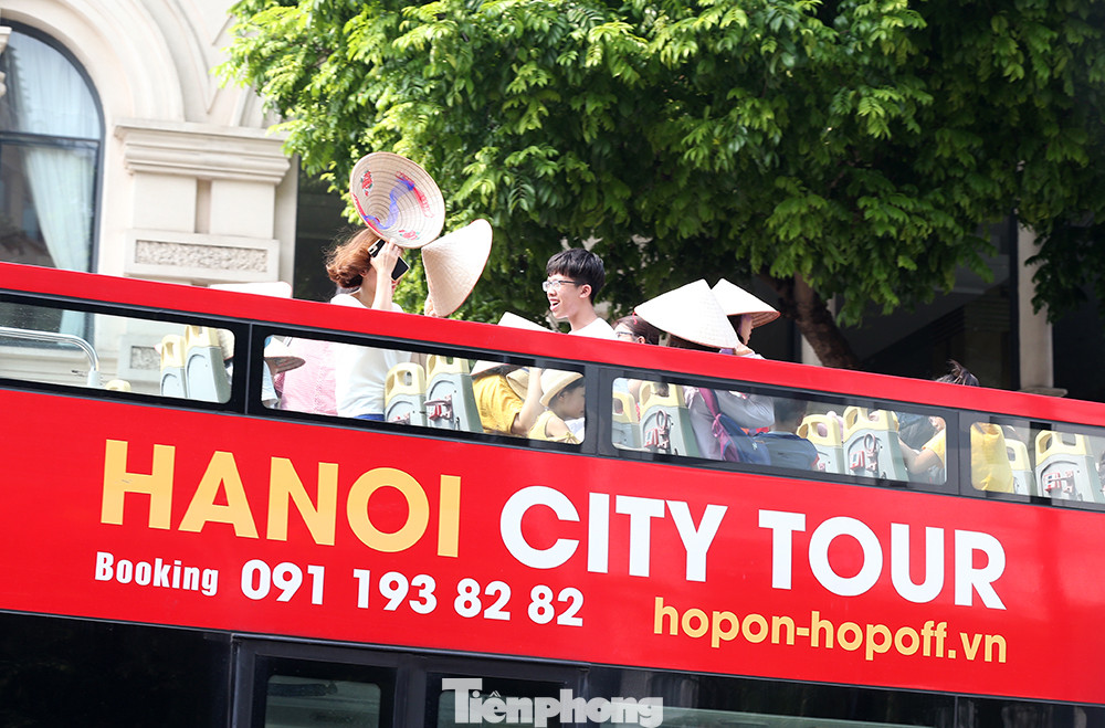 Người dân Thủ đô ngắm phố phường trên xe buýt 2 tầng.