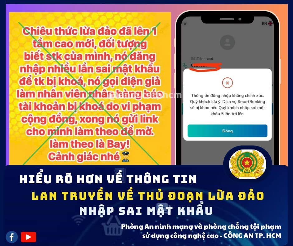 Những ngày qua, tin đồn về chiêu trò lừa đảo nhập sai mật khẩu ngân hàng đang lan truyền chóng mặt trên mạng xã hội, khiến nhiều người dân vô cùng lo lắng và hoang mang. Các đối tượng tội phạm sẽ tìm cách có được số tài khoản ngân hàng của nạn nhân. Sau đó, chúng cố tình nhập sai mật khẩu nhiều lần để tài khoản bị khóa.