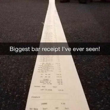 Có người rất thích thú với việc khoe với hóa đơn dài cả mét cho buổi tiệc tùng.