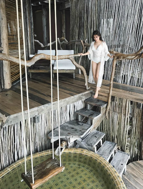 Trinnie cũng có một hội bạn thân con nhà giàu, thường xuyên rủ nhau check in tại các điểm vui chơi đẳng cấp khắp châu Mỹ từ Los Angeles, California, Hawaii, Cancun (Mexico)... Mới đây nhất là kỳ nghỉ ở resort Azulik - Adults Eco-Resort and Maya Spa ở Tulum (Mexico). Đây là khu nghỉ biệt lập, nằm sát biển với nhiều tiện nghi cao cấp nhưng rất gần gũi với thiên nhiên.
