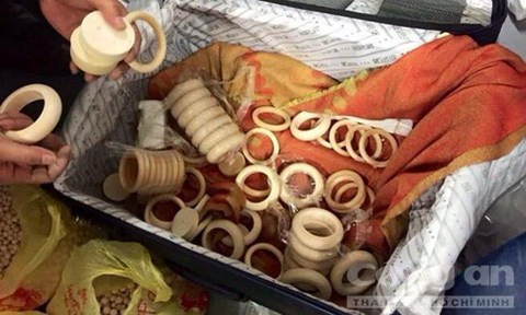 Qua kiểm đếm các cơ quan chức năng xác định tổng trọng lượng tang vật khoảng 180 kilogam gồm cả các đồ chế tác. Số tang vật này đã được 3 thanh niên vận chuyển trên chuyến bay VN680 bay từ Angola quá cảnh qua Malaysia về sân bay quốc tế Nội Bài.