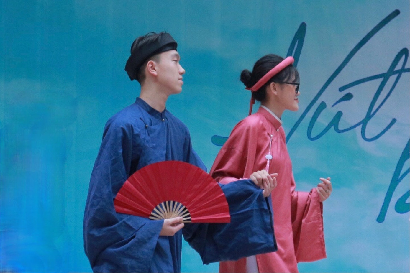 | Lê Huy Hoàng với tư cách Á khoa đầu vào, đại diện cho học sinh khóa 56 giương cao lá truyền thống của trường. |