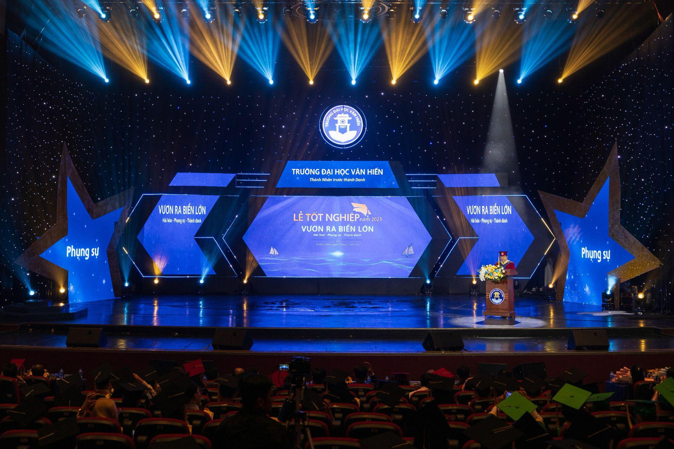 Lễ tốt nghiệp năm 2023 với chủ đề “VƯƠN RA BIỂN LỚN, Hài hòa - Phụng sự - Thành danh” mong muốn đánh dấu cột mốc cho sự trưởng thành của các tân khoa. Cột mốc mang tính nhân văn không chỉ đề cao sự phát triển toàn diện cho cá nhân sinh viên mà còn đề cao trách nhiệm của người học trong việc phụng sự cộng đồng xã hội.