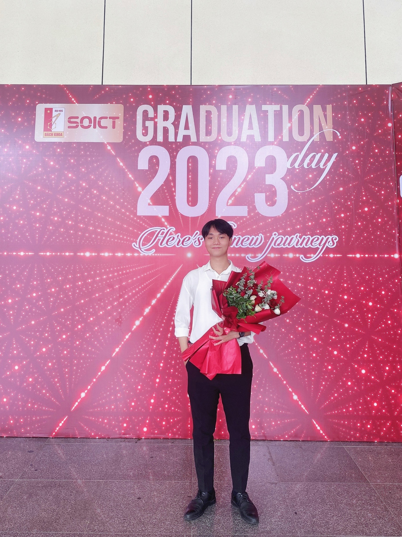 Cậu chia sẻ: “Mình luôn cố gắng học hỏi và phát triển bản thân mỗi ngày bằng cách rèn luyện bản thân phát triển một cách toàn diện. Về mặt học tập, chuyên môn, mình luôn cố gắng trau dồi, tìm tòi những cái mới, học từ các anh chị đi trước những kinh nghiệm quý giá để phát triển tốt hơn. Luôn đặt mục tiêu với từng giai đoạn và chủ động rèn luyện các kỹ năng cần thiết để đạt được mục tiêu đó đúng thời hạn. Bên cạnh đó, cần phát triển một cách toàn diện như rèn luyện sức khỏe, tinh thần thông qua các hoạt động thể dục thể thao, giải trí sau những giờ học, làm căng thẳng để không bị quá stress và giúp tái tạo lại năng lượng để làm việc tốt hơn.”
