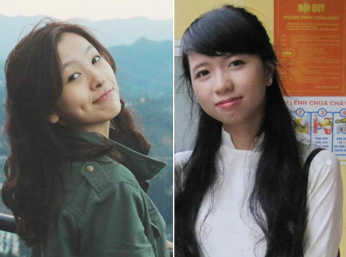 Thủ khoa khối D năm 2013 của Học viện Ngoại giao Mai Ngân Hà (trái) và đại học Ngoại thương Hà Nội Hoàng Thị Thúy Quỳnh. Ảnh: NVCC.