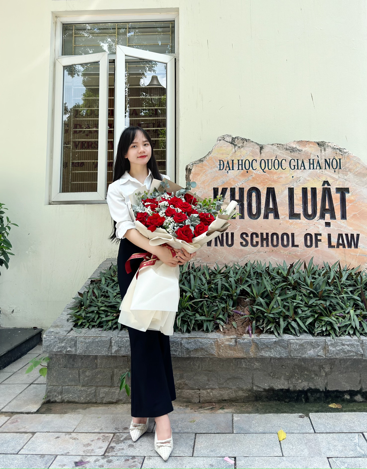 Mình chọn theo học tại Trường Đại học Luật - Đại học Quốc gia Hà Nội bởi vì khi tìm hiểu về Trường, mình cảm nhận được tinh thần khai phóng học thuật của nơi này nên muốn được thả mình vào đó để phát triển bản thân. Ở đó, mình được truyền cảm hứng rất lớn trong việc học, việc nghiên cứu, việc hành nghề từ các thầy cô và anh chị đi trước; chính điều này đã giúp mình có động lực và niềm tin hơn trong hành trình theo đuổi nghề Luật. Những kiến thức, kỹ năng mình học được từ Trường đã giúp ích cho mình rất nhiều trong công việc hiện tại và cả sau này nữa. Với mình, những gì đại học dạy cho chúng ta là nền tảng, là cái móng để chúng ta có thể xây tiếp những viên gạch tiếp theo trong ngôi nhà tri thức mà chúng ta dành cả đời để vun đắp, cái móng càng vững chắc thì ngôi nhà càng kiên cố".