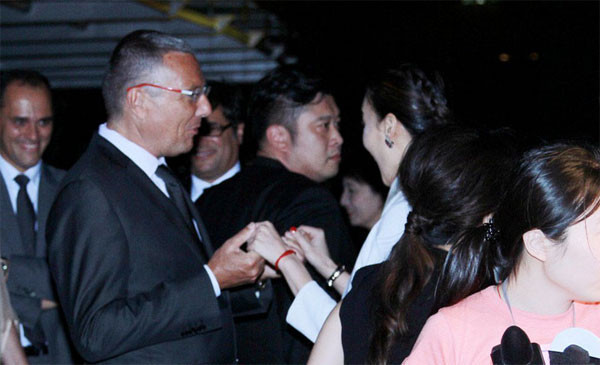 Thư Kỳ vui đùa với một quan khách quốc tế.