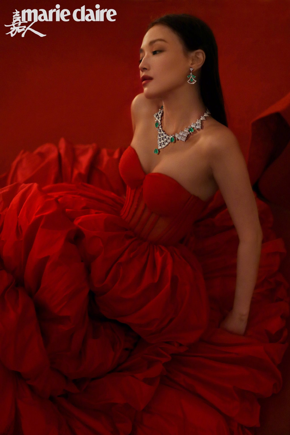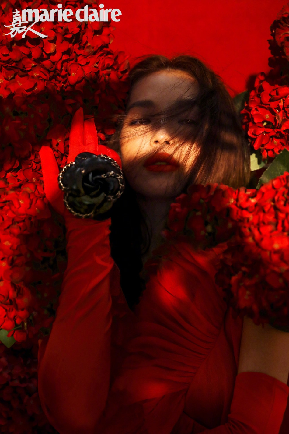 Mỹ nhân Hoa ngữ diện đầm đỏ toát lên thần thái quyến rũ như bông hồng phương Đông bí ẩn bên ngoài và rực lửa bên trong.