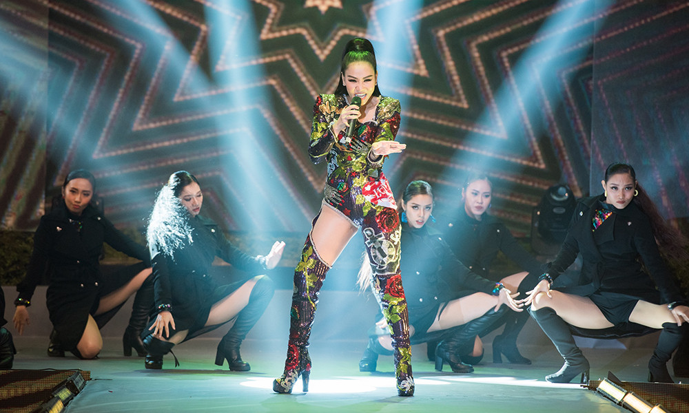 TPO - Nữ ca sĩ diện jumpsuit với kiểu dáng 'một mất, một còn' độc đáo và gợi cảm khi trình diễn trong đêm chung kết Mister Vietnam 2019 tối 14/9.