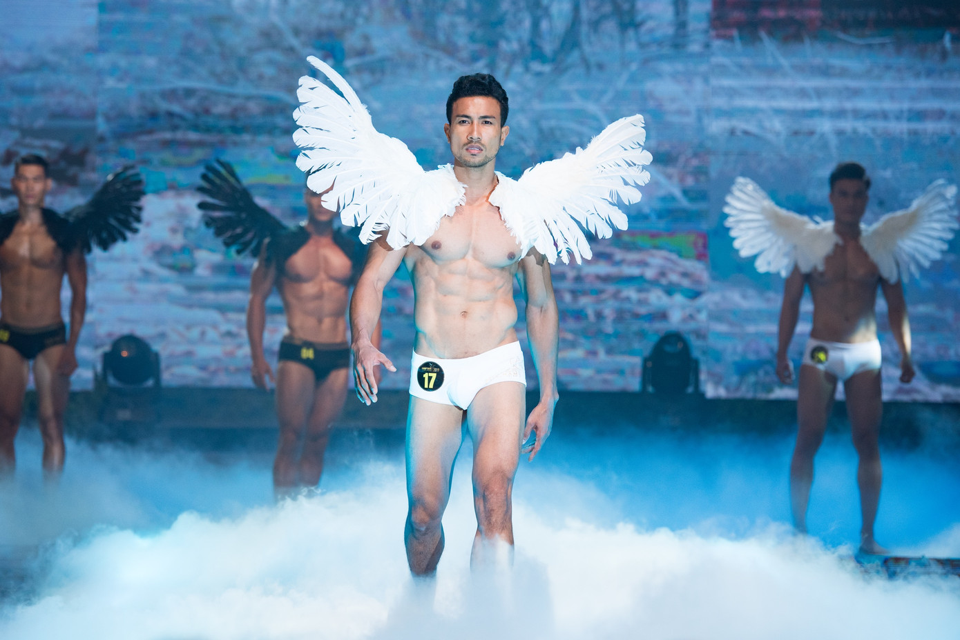 Các chàng trai khoe hình thể sáu múi ấn tượng trong những bộ cánh thiên thần cách điệu trên sân khấu.
