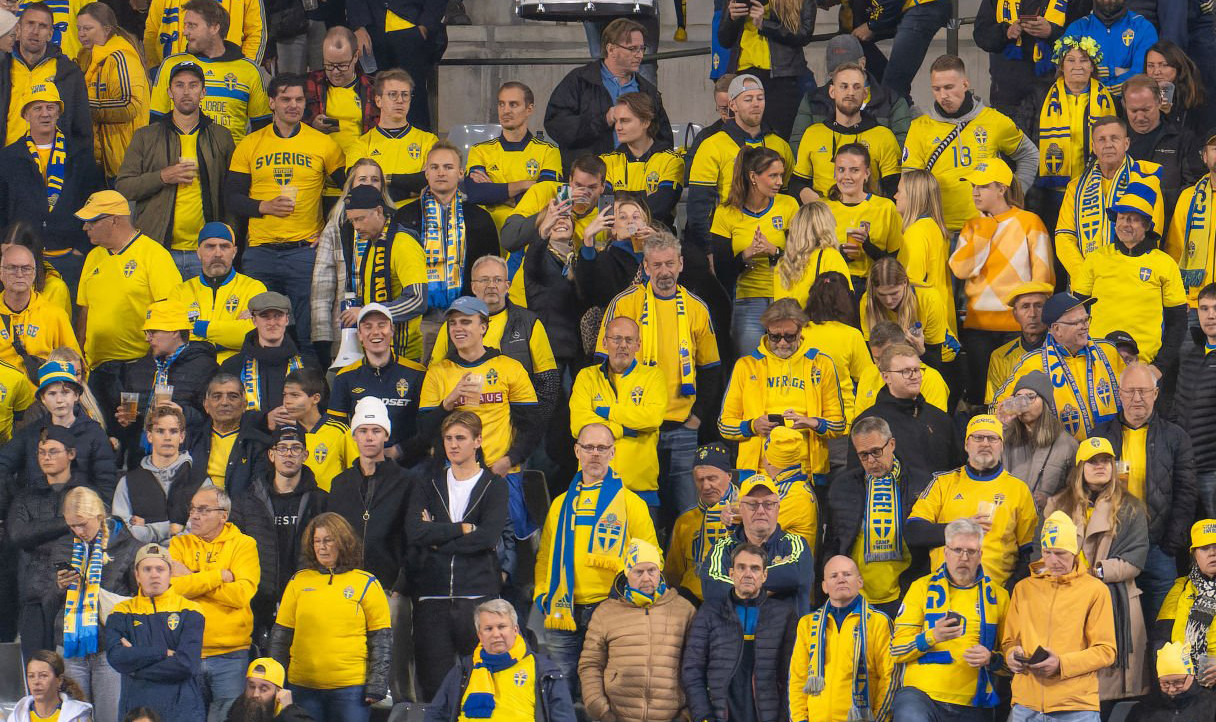 | Các CĐV Thụy Điển tập trung một chỗ và được cảnh sát bảo vệ trong đêm |