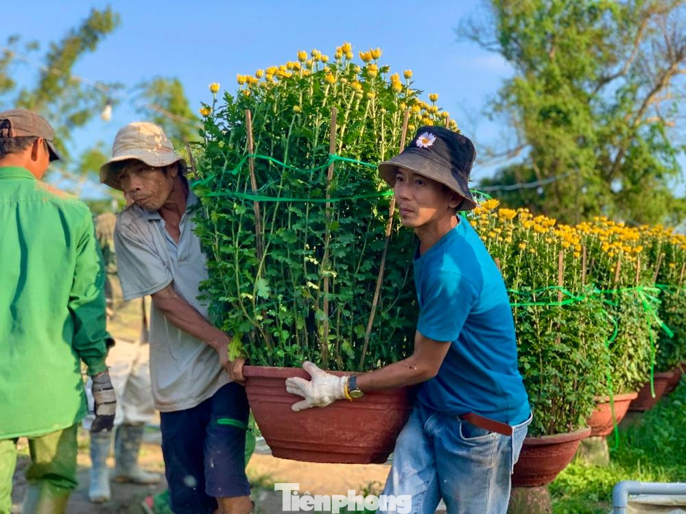 | Một số hộ trồng cúc phải đến vườn từ sáng sớm đến chiều muộn để chuyển hoa cho kịp các đơn hàng lớn. |