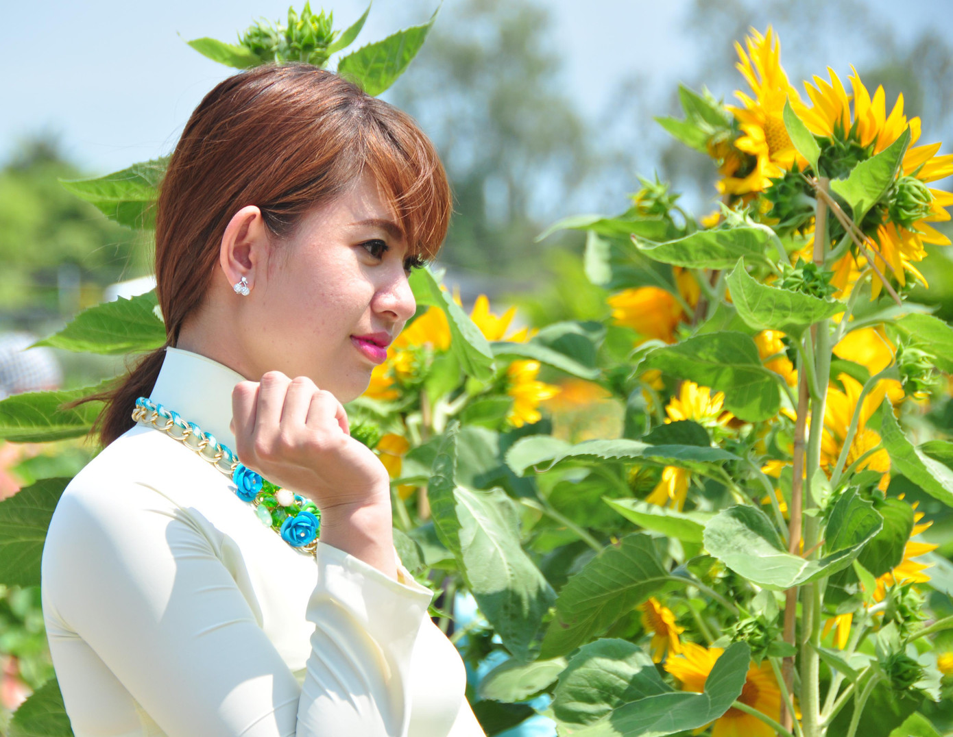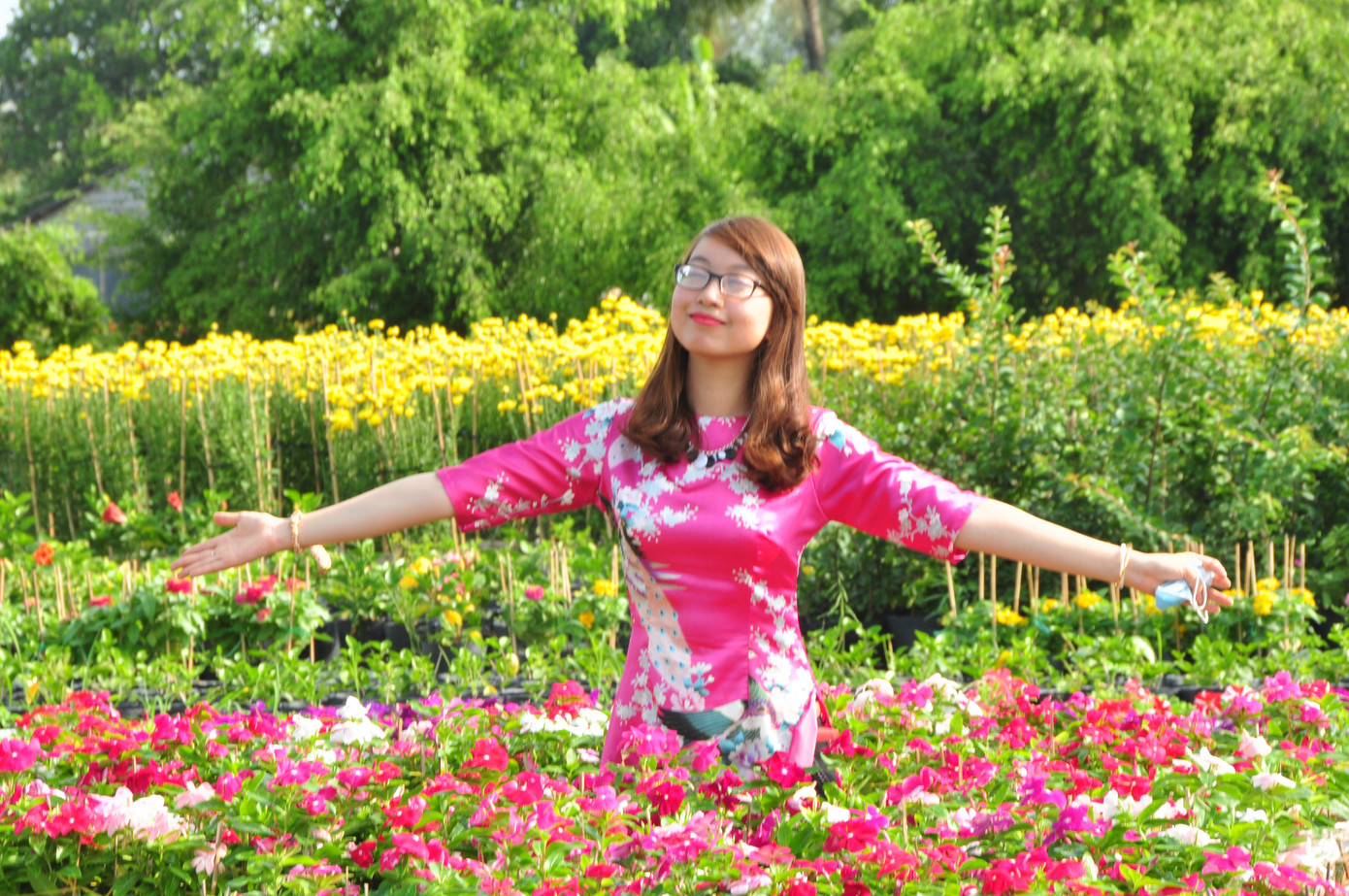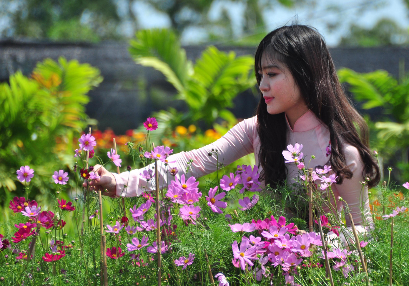 | Các bạn trẻ háo hức chụp ảnh bên vườn hoa tại Sa Đéc. Ảnh: Hòa Hội |