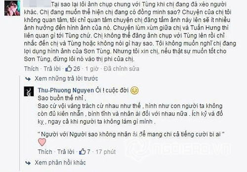 Dễ hiểu, bởi cách đây không lâu Thu Phương từng bị "ném đá" khi kéo Sơn Tùng vào lùm xùm với ca sĩ Tuấn Hưng.
