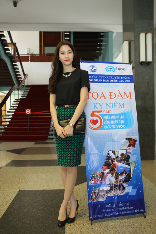 Mới đây khi tham dự buổi họp báo nhân dịp kỷ niệm 5 năm của Cổng nhân đạo quốc gia 1400 tổ chức tại TP. HCM, Thu Thảo tiếp tục ghi điểm bởi gu thời trang lịch duyệt của mình.
