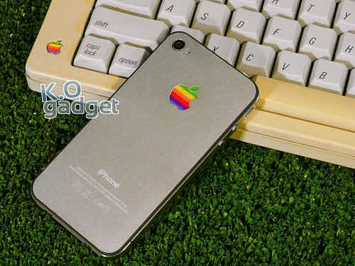 Thủ thuật: chỉ thay thế bộ mặt sau thủy tinh bằng chất liệu nhôm với lô-gô Apple bảy sắc cầu vồng như trên chiếc Mac cổ điển.