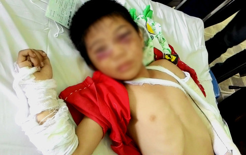 Gã cha dượng lấy điện thoại gọi cho chị Trần Ngọc Liên (39 tuổi, mẹ Hiếu) rồi đưa máy cho cậu bé nói chuyện. Lúc này Hiếu chỉ thều thào: “Mẹ ơi con bị dượng đánh gãy chân tay” rồi ngất lịm.