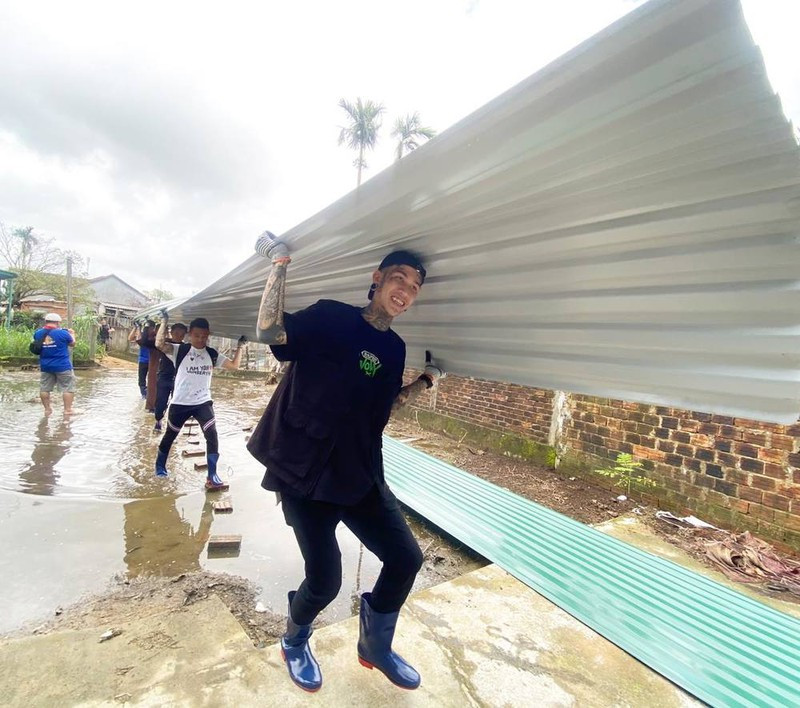 Dế Choắt vác tôn đến hỗ trợ bà con miền Trung sửa nhà.
