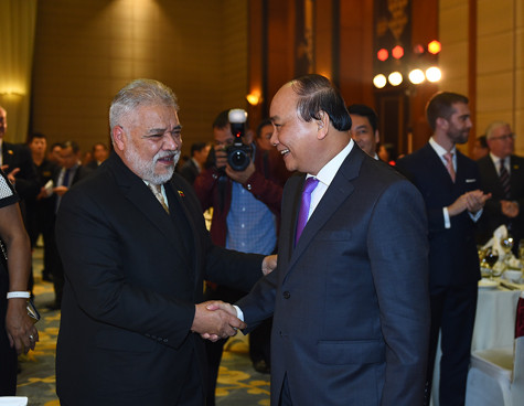 Nhân dịp này, Thủ tướng chia sẻ: “Tôi vừa trở về từ Diễn đàn Kinh tế Thế giới WEF-2017 với nhiều hoạt động, phát biểu, thảo luận trên các diễn đàn, gặp gỡ nhiều nguyên thủ quốc gia, các nhà lãnh đạo các tổ chức quốc tế, thấy rằng, dự báo không khí chung của năm 2017 là sự lạc quan của quá trình phục hồi toàn cầu, những cơ hội phát triển to lớn của cách mạng công nghiệp lần thứ 4, nhưng cũng đan xen sự lo âu về chủ nghĩa bảo hộ đang nổi lên, rủi ro về kinh tế, tài chính; khủng bố quốc tế, ô nhiễm môi trường, biến đổi khí hậu... Bối cảnh đó đòi hỏi tất cả chúng ta, các quốc gia dù lớn hay nhỏ, cần chung tay hành động gìn giữ hòa bình, ổn định, cùng chia sẻ lợi ích trong hợp tác, hội nhập trên cơ sở tôn trọng Hiến chương Liên Hợp Quốc và các nguyên tắc cơ bản của luật pháp quốc tế”.