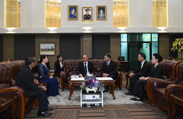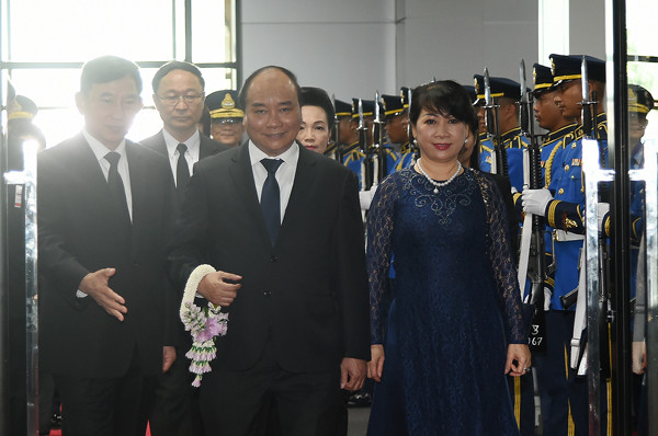 Ngay tại sân bay Don Mueang, nước chủ nhà Thái Lan treo biển lớn với dòng chữ “Chào mừng Thủ tướng Chính phủ nước Cộng hòa Xã hội chủ nghĩa Việt Nam, ngài Nguyễn Xuân Phúc và Phu nhân thăm chính thức Vương quốc Thái Lan”.