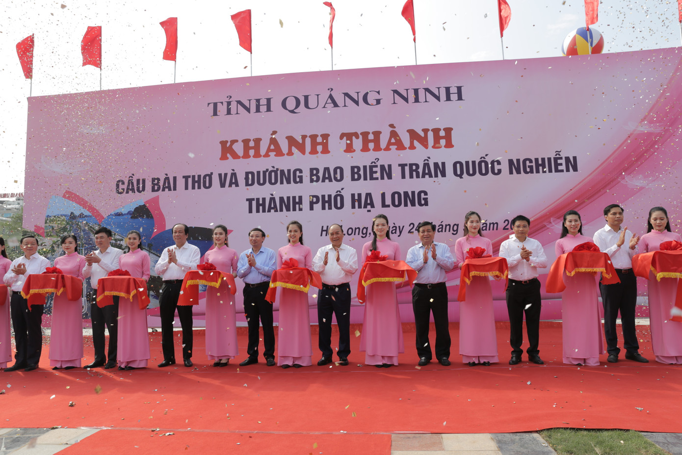 Thủ tướng Nguyễn Xuân Phúc cùng lãnh đạo các bộ ngành, địa phương cùng đi bộ trên tuyến đường bao biển vừa được khánh thành.