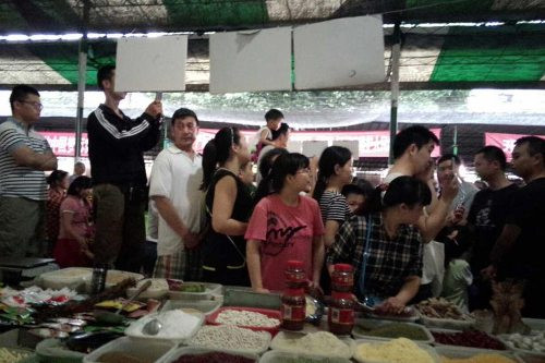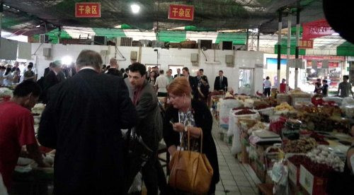 Các quan chức Đức trong đoàn cũng xem xét một số mặt hàng ở chợ. Ảnh:Chinadaily