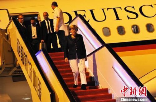 Thủ tướng Đức Angela Merkel hôm nay bắt đầu chuyến thăm Trung Quốc 3 ngày để bàn về các vấn đề thương mại và thúc đẩy hợp tác kinh tế song phương. Trong ảnh, bà Merkel đang bước xuống sân bay quốc tế ở Thành Đô, thủ phủ tỉnh Tứ Xuyên. Ảnh: Chinanews