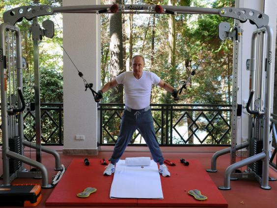 Tổng thống Nga Vladimir Putin tập thể hình ở dinh thự Bocharov Ruchei, Sochi, Nga hôm 30/8.