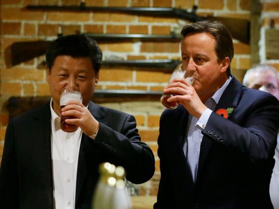 Thủ tướng Anh David Cameron uống bia cùng Chủ tịch Trung Quốc Tập Cận Bình ở Princess Risborough, gần Chequers, Anh