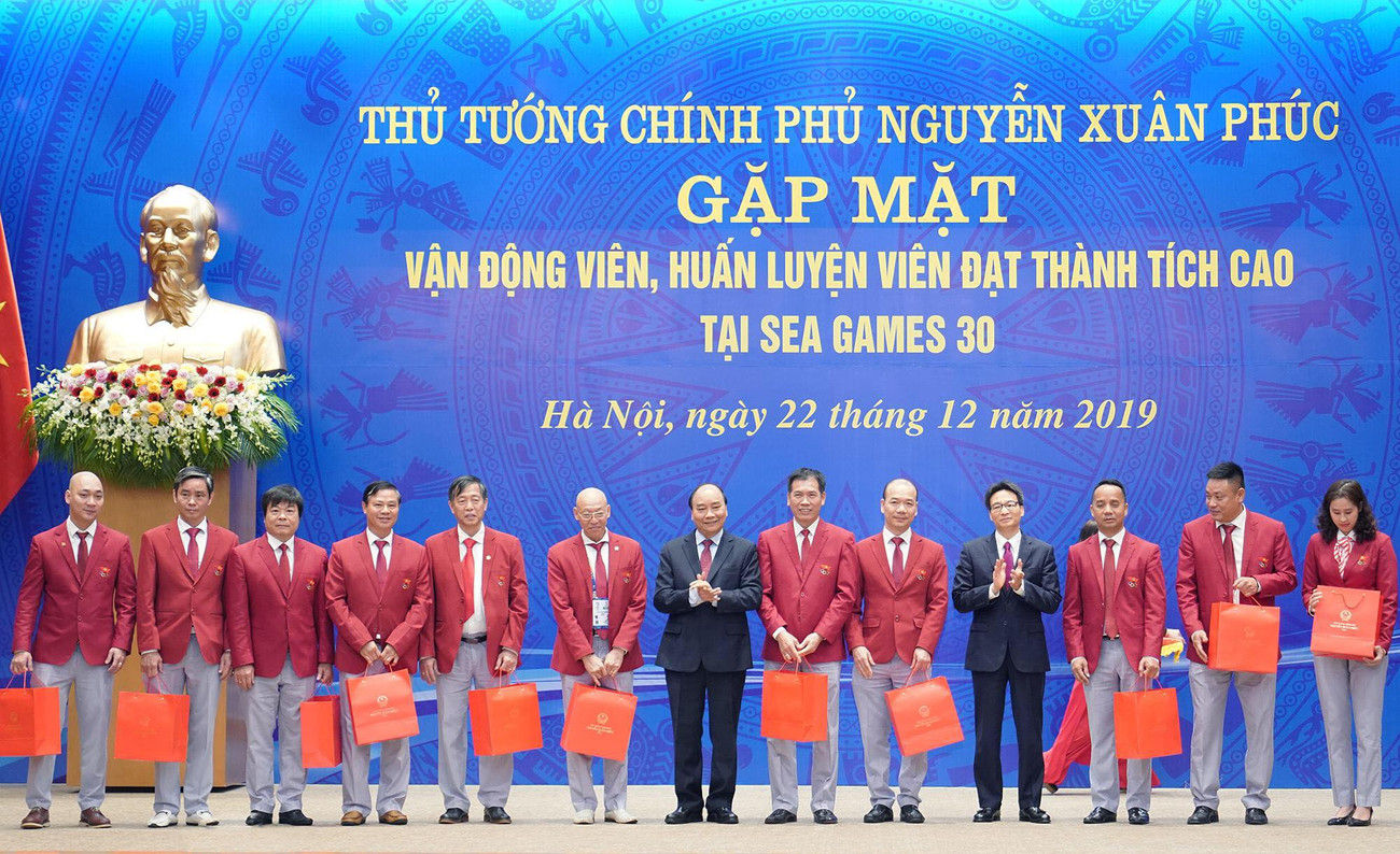 Tại trụ sở Chính phủ, Thủ tướng Nguyễn Xuân Phúc đã gặp mặt khoảng 450 vận động viên, huấn luyện viên đạt thành tích cao tại Đại hội thể thao của khu vực Đông Nam Á được tổ chức ở Philippines.
