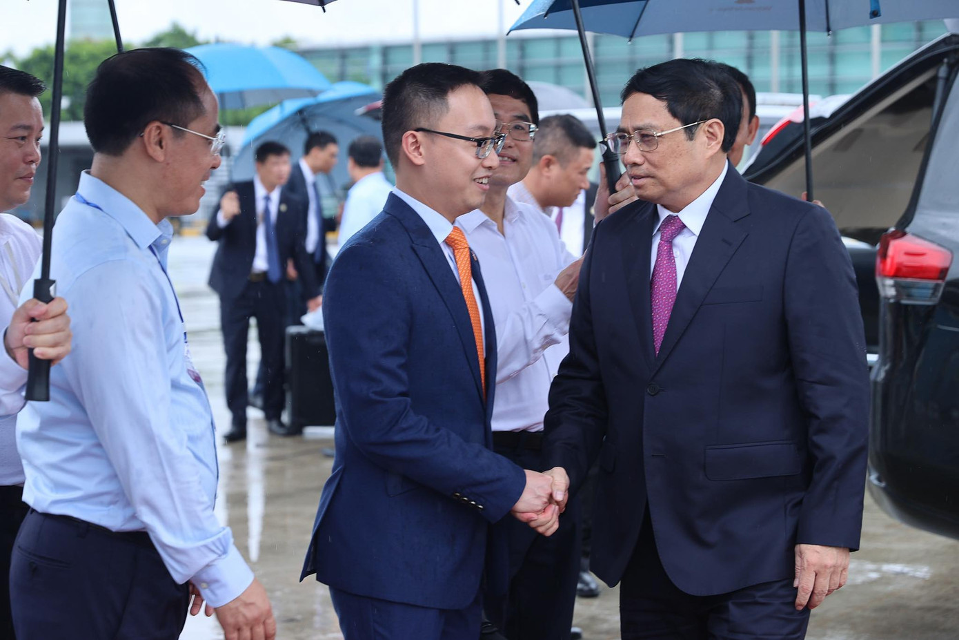Tháp tùng Thủ tướng có: Bộ trưởng Bộ Ngoại giao Bùi Thanh Sơn, Bộ trưởng – Chủ nhiệm Văn phòng Chính phủ Trần Văn Sơn, Bộ trưởng Bộ Kế hoạch và Đầu tư Nguyễn Chí Dũng, Bộ trưởng Công thương Nguyễn Hồng Diên, Bộ trưởng Bộ Tài nguyên và Môi trường Đặng Quốc Khánh, Chủ tịch Ủy ban Quản lý vốn Nhà nước Nguyễn Hoàng Anh, Thứ trưởng Bộ Công an Lương Tam Quang, Thứ trưởng Thường trực Ngoại giao Nguyễn Minh Vũ;