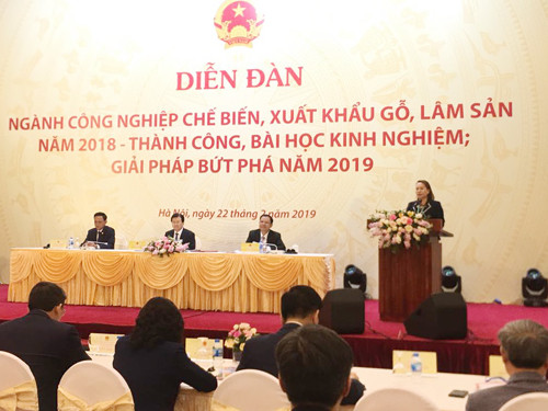 Sáng 22/2, tại Hà Nội, Thủ tướng Chính phủ Nguyễn Xuân Phúc, Phó Thủ tướng Chính phủ Trịnh Đình Dũng, Bộ trưởng Bộ Nông nghiệp và Phát triển nông thôn (Bộ NN&PTNT) Nguyễn Xuân Cường chủ trì Diễn đàn: “Ngành công nghiệp chế biến, xuất khẩu gỗ, lâm sản năm 2018 – Thành công, bài học kinh nghiệm; giải pháp bứt phá năm 2019”.