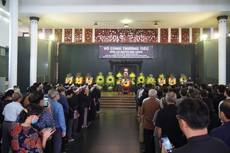 Sáng 8/5, tại Nhà tang lễ quốc gia, số 5 Trần Thánh Tông (Hà Nội), Ban Chấp hành T.Ư Ðảng Cộng sản Việt Nam, Ban Tổ chức T.Ư đã tổ chức trọng thể lễ tang ông Nguyễn Đình Hương theo nghi thức lễ tang cấp cao. Tổng Bí thư, Chủ tịch nước Nguyễn Phú Trọng gửi vòng hoa kính viếng.