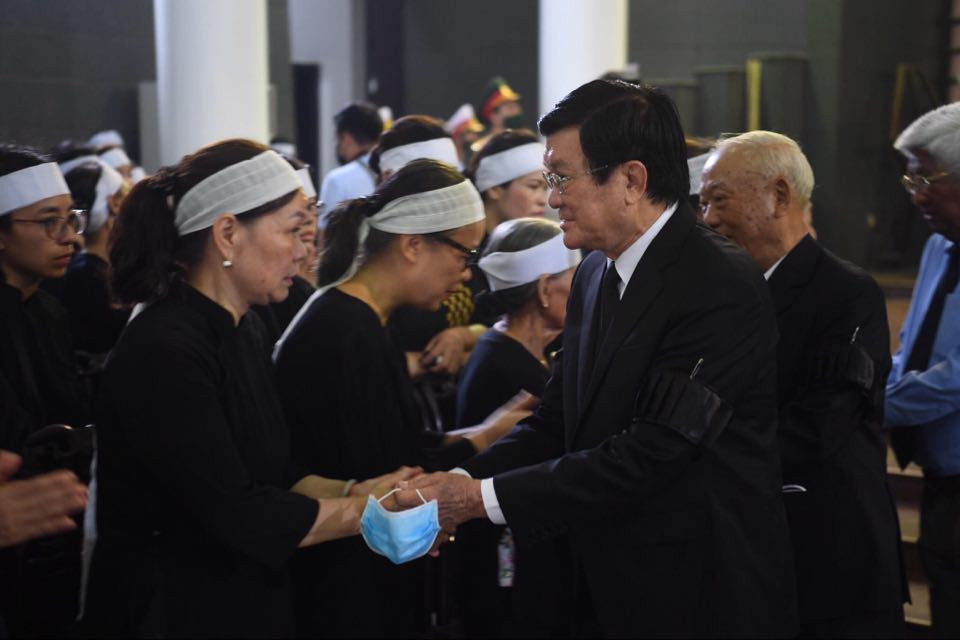 Nguyên Chủ tịch nước Trương Tấn Sang chia buồn với gia đình ông Nguyễn Đình Hương. Ảnh: Như Ý