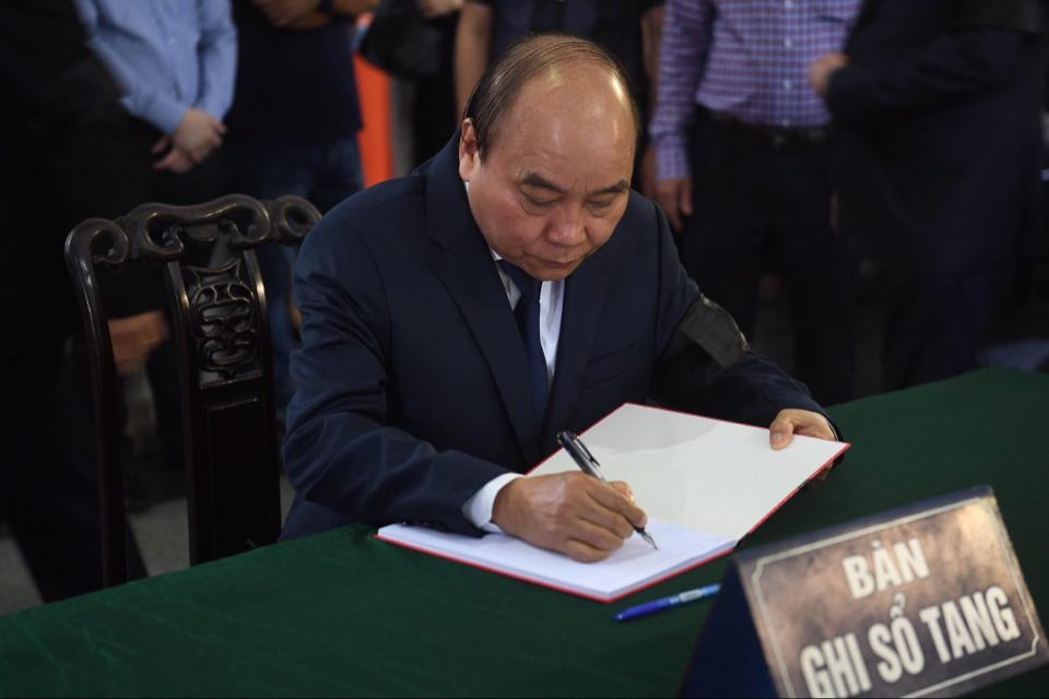 Thủ tướng Chính phủ Nguyễn Xuân Phúc ghi sổ tang. Ảnh: Như Ý