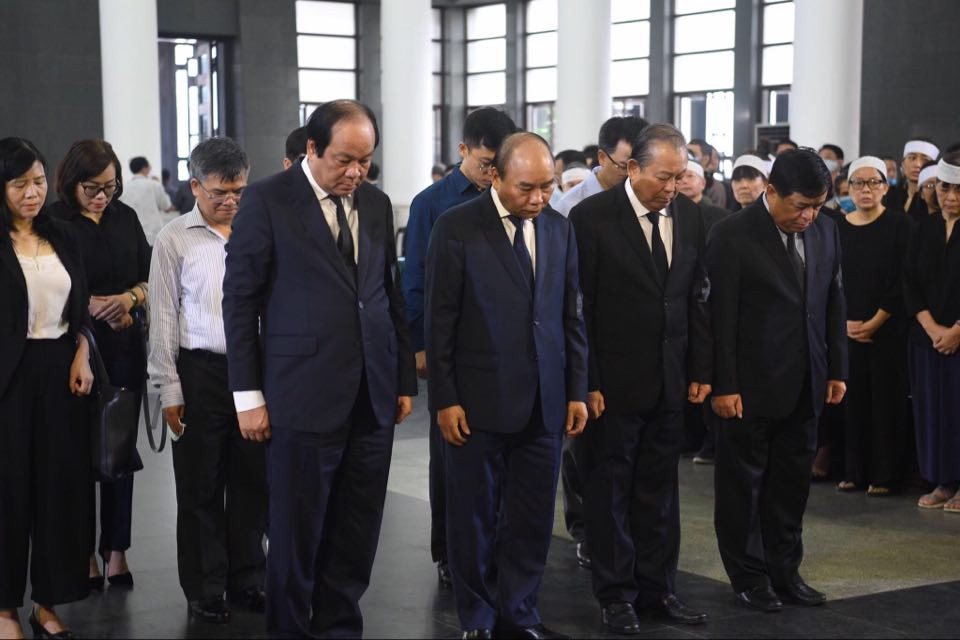 Thủ tướng Chính phủ Nguyễn Xuân Phúc cùng Phó Thủ tướng thường trực Trương Hòa Bình vào viếng ông Nguyễn Đình Hương. Ảnh: Như Ý
