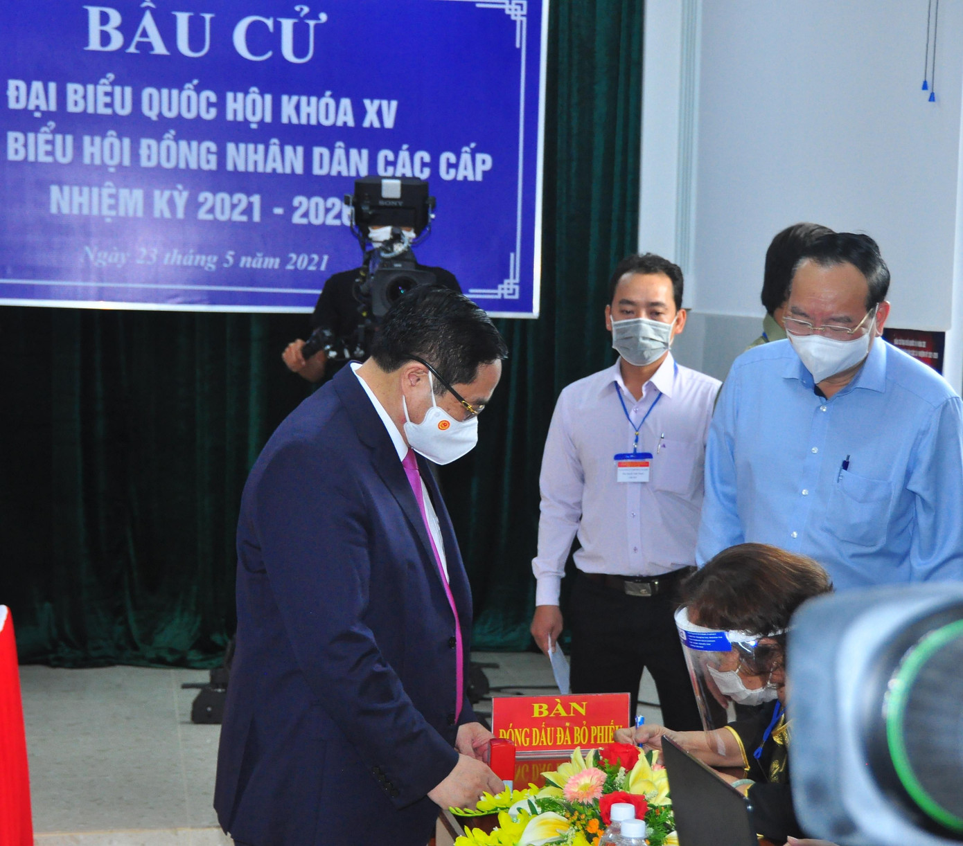 | Thủ tướng Phạm Minh Chính tham gia bỏ phiếu tại TP Cần Thơ. - Ảnh: Hòa Hội |