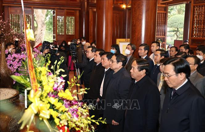 Chiều 4/2/2022, Thủ tướng Phạm Minh Chính và đoàn công tác của Chính phủ đến dâng hương tưởng niệm Chủ tịch Hồ Chí Minh tại Khu Di tích Kim Liên (xã Kim Liên, huyện Nam Đàn, Nghệ An).
