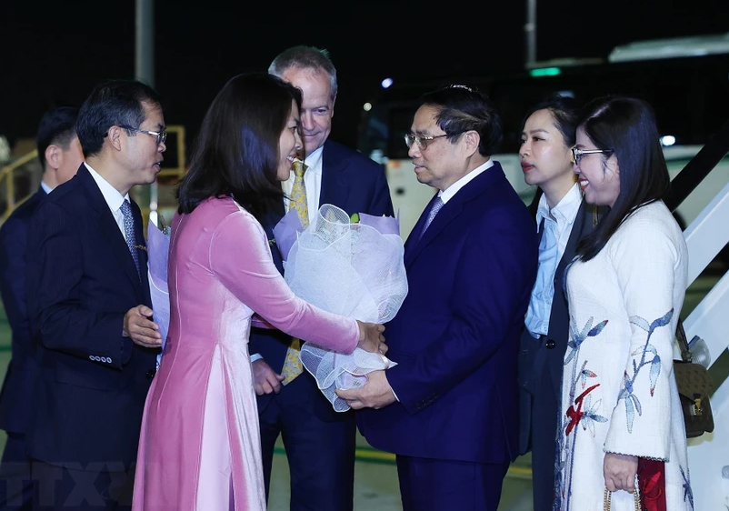 Theo đặc phái viên TTXVN, sau hơn 9 giờ bay, vào lúc 21h20 (giờ địa phương, tức 17h20 giờ Hà Nội) ngày 4/3, chuyên cơ chở Thủ tướng Chính phủ Phạm Minh Chính và Phu nhân Lê Thị Bích Trân cùng Đoàn đại biểu Cấp cao Việt Nam đã tới sân bay Melbourne, bắt đầu chuyến công tác tham dự Hội nghị Cấp cao Đặc biệt kỷ niệm 50 năm quan hệ ASEAN-Australia, thăm chính thức Australia từ ngày 5 đến ngày 9/3 theo lời mời của Thủ tướng Australia Anthony Albanese.