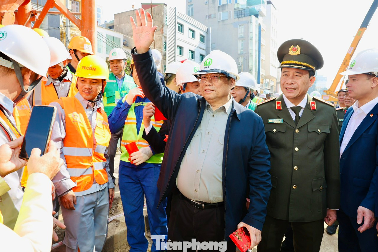 | Thủ tướng thăm, chúc Tết cán bộ, công nhân viên, người lao động đang làm việc xuyên Tết tại Nhà ga S12 dự án Đường sắt đô thị Nhổn - ga Hà Nội. |