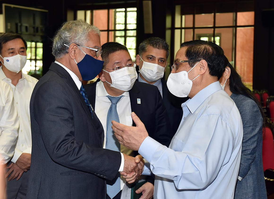 Nhân dịp này, tôi cũng thay mặt lãnh đạo Đảng, Nhà nước Việt Nam cảm ơn các tổ chức quốc tế, các nước đối tác bạn bè quốc tế, kiều bào ta ở nước ngoài đã chung tay, chia sẻ, ủng hộ giúp đỡ Việt Nam trong phòng chống đại dịch COVID-19, trong đó có việc phân phối, hỗ trợ cung cấp vaccine cho Việt Nam.