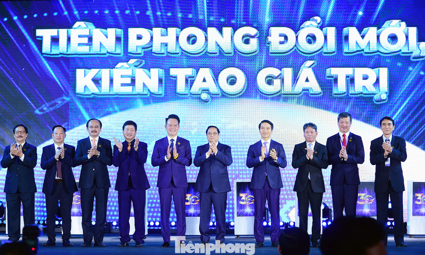 | Thủ tướng Phạm Minh Chính và các đại biểu thực hiện nghi thức đánh dấu chặng đường phát triển mới của Hội DNT Việt Nam và phong trào DNT Việt Nam. Ảnh: Xuân Tùng |