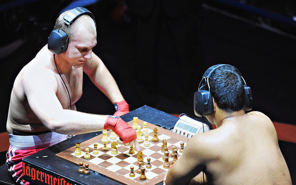 Hai vận động tham gia thi đấu sẽ đeo tai nghe để loại tạp âm rồi tập trung cao độ để tranh bất phân thắng bại trong môn cờ vua. Ngay khi vừa hết 3 phút, họ lại đeo găng tay chuyên dụng rồi đứng trên võ đài.