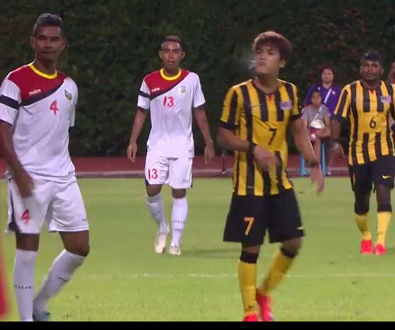 Nazmi Faiz Mansor bị thẻ đỏ trong trận đấu giữa U23 Malaysia với U23 Đông Timor. Tiền vệ 21 tuổi đã nhổ nước bọt vào Filipe Oliveira và lập tức bị trọng tài rút thẻ truất quyền thi đấu.